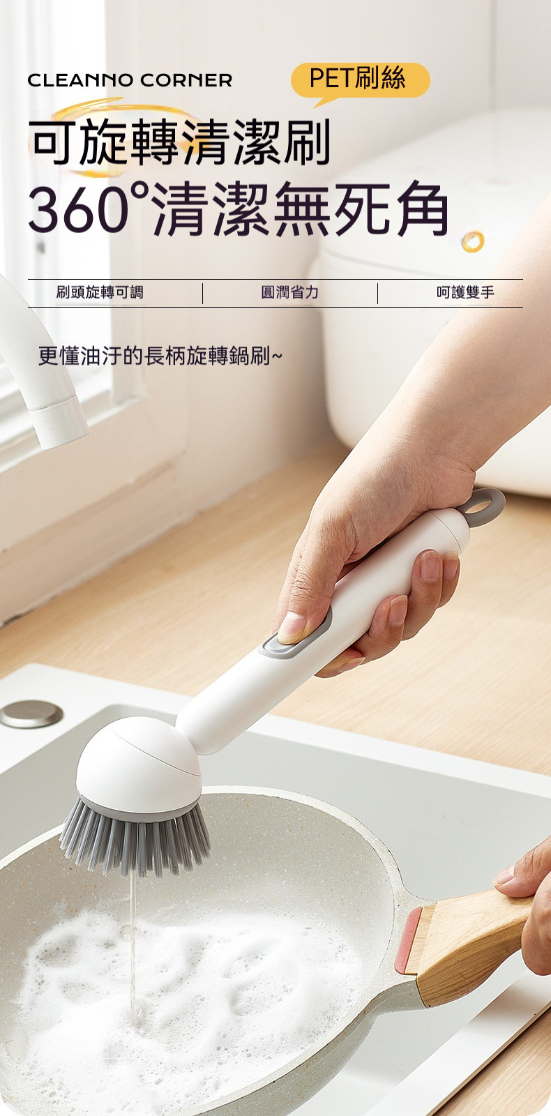 5分鐘前萬用旋轉清潔刷,死角剋星,轉轉就乾淨,360°旋轉無死角,從廚房到浴室,一刷搞定所有髒污 - 【買一送一】3入組-NT$ 998